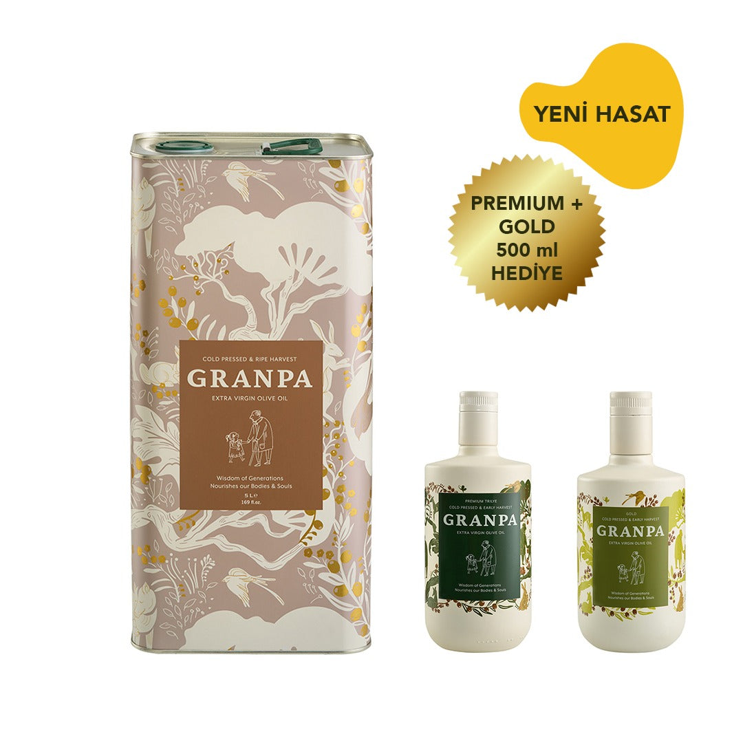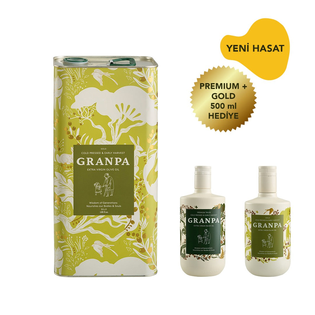 Granpa Gold 5 L Erken Hasat Soğuk Sıkım Zeytinyağı + (1 x Premium Trilye 500 ml Zeytinyağı + 1 x Gold 500 ml Zeytinyağı)