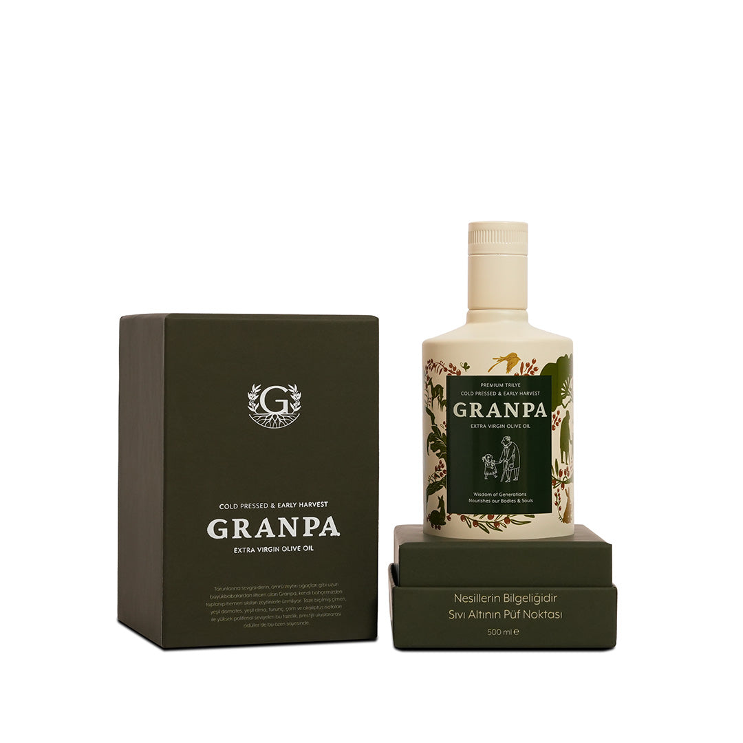 Granpa Premium Trilye 500 ml Erken Hasat Soğuk Sıkım Zeytinyağı Özel Seri İlk 300 Şişe + Hediye Kutusu