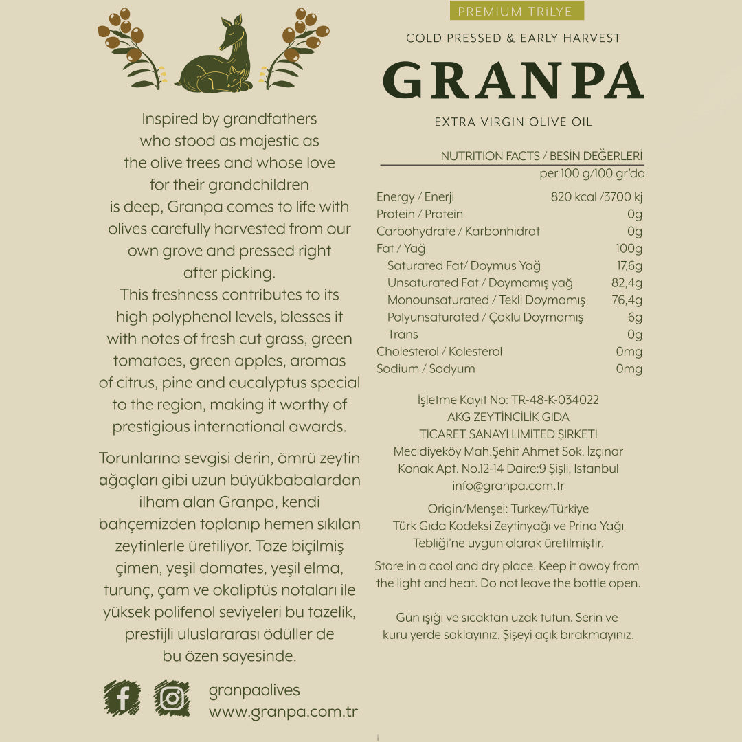 Granpa Premium Trilye 250 ml Erken Hasat Soğuk Sıkım Zeytinyağı